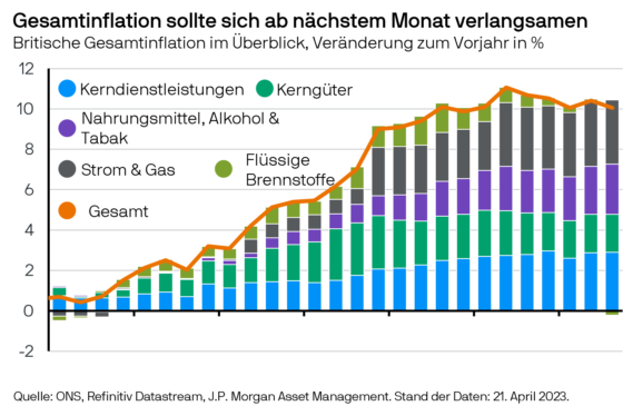 Die britische Inflation war letzte Woche höher als erwartet, da der Gesamt-VPI im März mit 10,1 % zum Vorjahr im zweistelligen Bereich blieb. Obwohl Großbritannien offenbar ein hartnäckigeres Inflationsproblem hat als die Eurozone und die USA, dürfte die Gesamtinflation ab kommendem Monat nachlassen. Der Anteil der Strom- und Gaspreise an der jährlichen Teuerung sollte aufgrund der…