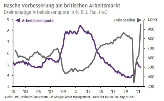Die jüngsten Wirtschaftsdaten aus Großbritannien deuten auf einen Anstieg der Wirtschaftstätigkeit und der Neueinstellungen hin. Die dreimonatige Arbeitslosenquote sank im Juni auf 4,7 %, die einmonatige Quote auf 4,4 % – ein Niveau, das die Bank of England erst im dritten Quartal 2022 erwartet hatte. Da sich die freien Stellen auf Rekordniveau bewegen, dürfte das Beschäftigungswachstum in…