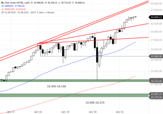Der Dow Jones Industrial Average täuschte zuletzt oben wie unten an, allerdings nur auf Intraday-Basis. Per Schlusskurs wurde die Range der letzten Tage gehalten. Im gestrigen Handel kam es zwischenzeitlich zu einem Auswasch, die Bullen konterten aber eindrucksvoll. Die auf Charttechnik basierten Aussagen haben folglich ebenfalls Bestand. Kurzfristig ist der Index neutral einzustufen. Neue Handelssignale…