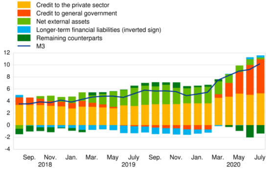Die Eurozone erlebt derzeit eine Geldschwemme bisher unbekannten Ausmaßes, um die wirtschaftlichen Folgen der Pandemie einzugrenzen. Ein Großteil der Mittel wird finanziert durch die Europäische Zentralbank (EZB) und entsprechenden Anleihekaufprogrammen. Darüber hinaus übernehmen Staaten Bürgschaften für ins Taumeln geratene Unternehmen und begünstigen damit einen effektiveren Geldfluss in die Realwirtschaft. All dies führte zu einem starken…