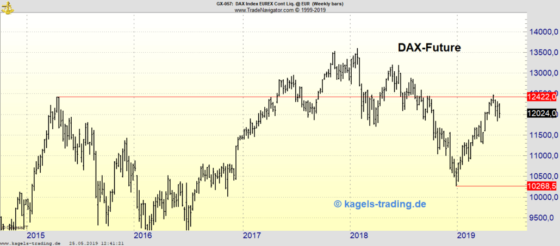 Trend des Wochencharts: Aufwärts/Seitwärts Der abgebildete Wochenchart des DAX-Future zeigt die Kursentwicklung seit Anfang 2015, bei einem letzten Kurs von 12.024 Punkten. DAX-Future korrigiert Aufwärtstrend Ausgehend von dem Vorjahrestief bei 10.268,5 Punkten zeigt der DAX-Future im abgebildeten Wochenchart einen etablierten Aufwärtstrend, der durch steigende Tiefpunkte und steigende Hochpunkte charakterisiert ist. Vor vier Wochen wurde das aktuelle Jahreshoch…