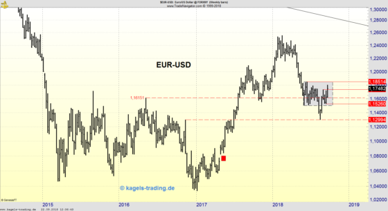 Der abgebildete Wochenchart des Währungspaares Euro/Dollar (EUR/USD Forex) zeigt die Kursbewegung seit Januar 2015. Jeder Kursstab stellt die Kursentwicklung für eine Woche dar, bei einem letzten Kurs von 1,1518. Im Wochenverlauf zeigte sich EUR/USD schwächer und entwickelte eine negative Korrekturkerze. Aktueller Kurs von EUR/USD. Mehr über den Euro lesen. EUR-USD steckt in Konsolidierung fest Hier klicken und EUR-USD Handelssignale…