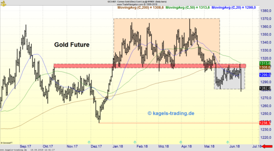 Trend des Tagescharts: Abwärts/Seitwärts Der abgebildete Tageschart des in New York gehandelten Gold-Futures zeigt die Kursentwicklung seit September 2017, bei einem letzten Kurs von $1.282. Gold-Future erreicht neues Jahrestief Handelssignale für Goldaktien- und Silberaktien – hier weiterlesen Goldpreis scheitert am Widerstand der $1.300 Marke Der Goldpreis hat sich seit Ende Januar in einer großen Trading Range (Konsolidierung)…