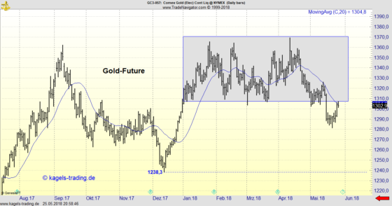Der abgebildete Tageschart des in New York gehandelten Gold-Futures zeigt die Kursentwicklung seit September 2017, bei einem letzten Kurs von $1.302,9. Gold-Future im Abwärtstrend Handelssignale für Goldaktien- und Silberaktien – hier weiterlesen Goldpreis testet den Widerstand knapp über $1.300 Der Goldpreis hat sich seit Ende Januar in einer großen Trading Range (Konsolidierung) zwischen $1.300 und $1.370 befunden,…